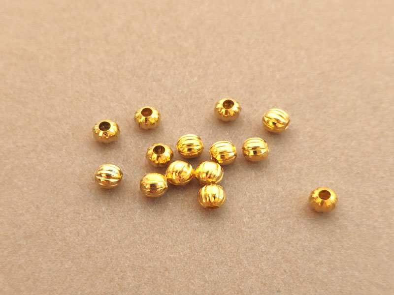 Gold Metal Spacer Bead with ridges (Pumpkin Beads)