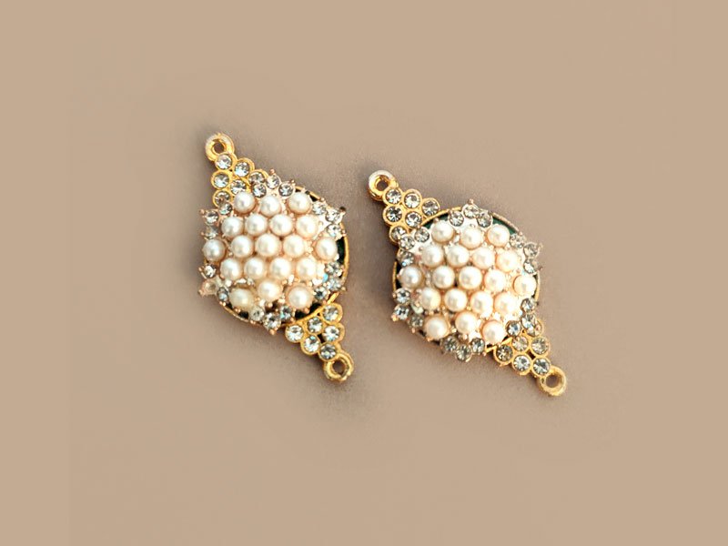 Pearl Charm with rhinestones and loops, 1 pc