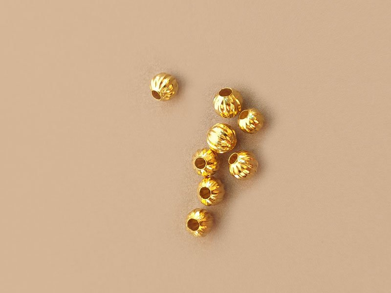 Gold Metal Spacer Bead with ridges (Pumpkin Beads)